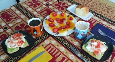 Los fines de semana que tenemos mas tiempo, pongo unos desayunos interesantes. Utilizo ingredientes variados que carecen de mantequillas y resultan sabrosos y apetitosos. Hace tiempo que dejamos las bollerias y los zumos del super porque además de engordar un montón, no resultan nada sanos. El pan con tomate y jamón nos encanta pero aunque es cardiosaludable tiene demasiadas calorias y lo pongo solo en dias muy especiales. Ahora comenzamos el dia tostando una rebanada del pan que hacemos en casa, bien untada de aguacate. Encima va un huevo o unas claras de huevo, con semillitas variadas: chia, amapola, sesamo... que lo dejan mas agradable a la vista y paso por el microondas rodajas de tomate con cebolleta que se hacen en su propio jugo para rematar la jugada por encima del huevo y asi dejo la rebanada mas jugosa. Procuro que todo sean grasas saludables. Las frutas no deben faltar, sin hacerla zumo, que sea de temporada y comida con su propia fibra. Pedro bebe su café con bizcocho casero y yo prefiero un té verde, una infusion de frutas del bosque o una bebida de avena con cereales. Este desayuno nos da energia y nos prepara para las grandes caminatas que solemos hacer los fines de semana, cuando hace buen tiempo, claro, que llevamos un invierno muy largo y muy duro en el que apenas hemos podido salir a caminar.