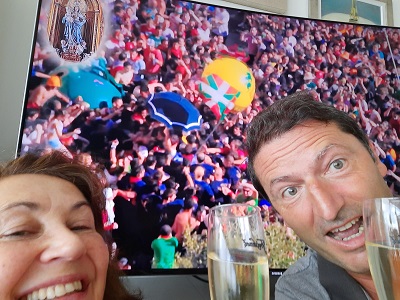 No queriamos perdernos la llegada del Celedón a Vitoria este año, aunque ha sido solo a nuestros corazones, pero hemos decidido que no por eso hay que entristecerse. Asi que nos hemos arremangado, se ha puesto a enfriar una botella de champán en la nevera y con algo para picar a las 6 de la tarde nos hemos puesto el video de la bajada de la torre de San Miguel de 2018 y lo hemos vivido como si en ese momento se estuviera produciendo en directo, con la entrevista al Celedón incluida. Ha sido emocionante doblemente, por una parte por darnos cuenta de que somos unos privilegiados al haber llegado a este día con salud y por otra porque echábamos en falta ese roce humano de la plaza, esos apretujamientos mientras Celedón alcanza la escalinata de San Miguel y sobre todo los besos y abrazos que se veian en el vídeo, donde todo el mundo se desea lo mejor aunque sean de diferentes ideologías y pensamientos. Como creemos que será el último año que se den las no-fiestas, la esperanza nos ha hecho olvidar todo lo que sigue pasando a nuestro alrededor y que ojalá termine muy pronto.