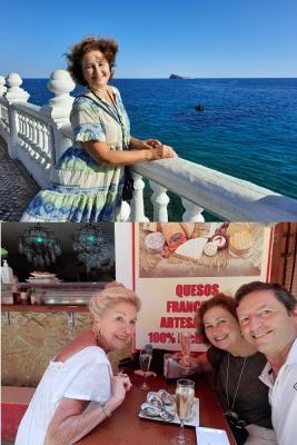 Qué diferencia con lo tranquilos que habiamos estado toda la semana. De repente nos metimos en una vorágine absoluta. El hotel estaba en la zona de Levante, en segunda línea de la playa muy cerca del paseo marítimo. Los británicos de colores, con solo el pantalón puesto y una sempiterna jarra de cerveza en la mano, era lo único que se veia a nuestro alrededor. Chillando como locos pues habia partido de futbol de los suyos. Todo lleno de tienditas y bares para ellos nada atractivos. Dejamos las cosas en el hotel y fuimos a ver el paseo maritimo que se me hizo estrecho y antiguo, su suelo resbalijaba y los carritos electricos de los abuelos ingleses dificultaban el recorrido. La vuelta al hotel la hicimos por la calle paralela, comercial a tope, iluminada por aros de luz colgantes, con tiendas de todas las franquicias y al final los cabarets, salas de fiestas, bares de copas y lugares donde las chicas bailaban muy ligeras de ropa para atraer hacia dentro a futuros clientes donde se ofrecían magics shows todavía más picantes. También se notaba ambiente gay. Cuál fue nuestra sorpresa cuando por la noche nos dimos cuenta de que toda esa zona la veiamos y oíamos desde el balcón de la habitación. La clientela del hotel era inglesa con lo cual la comida del hotel no fue nada excelente, sino todo lo contrario, pero pronto le vimos la vena divertida a todo aquello.