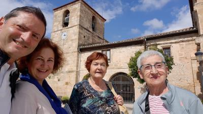 Hemos empezado este mes de septiembre con muchas actividades culturales. Tras la fiesta en las campas de Olarizu que cierra la temporada festiva en Vitoria, conferencias y excursiones han marcado la pauta de este mes. Empezamos la cronología en el Círculo, presentándonos el programa de las visitas a las ermitas e iglesias de esta temporada y escuchando una conferencia sobre cómo era la ruta de las diligencias por Alava. Otro dia los astrónomos vitorianos, en el marco del Ataria, nos dejaron unos retazos de mitología vasca relacionada con nuestro firmamento. Fuimos el sábado a La Puebla de Arganzón para escuchar y ver con detalle la iglesia de la Asunción y su magnífico retablo plateresco rematado por un Calvario con toda la iconografía completa que acompañó la muerte de Cristo. El siguiente jueves escuchamos la historia fascinante que rodea al cinturón de asteroides conociendo a Apophis, el protagonista malvado que amenaza chocar con nuestro planeta. El sábado siguiente emprendimos la primera ruta intensiva siguiendo las indicaciones del proyecto Patrimonio Abierto en visita libre. Conocimos la iglesia de la Concepción en Salinillas de Buradón, junto al castillo de los Condes de Oñate, con su precioso doble sepulcro plateresco lleno de filigranas y detalles de Don Pedro Velez de Guevara y su esposa la bella Doña Juana Enriquez de Acuña. Luego, ya en Burgos, llegamos a la iglesia de Ircio. Su retablo está dedicado y detalladamente esculpido por completo a San Pedro, con escenas de la vida y martirio del apóstol, asi como minuciosas esculturas de santas mártires muy oportunamente encajadas dentro del mismo. Lo mas impresionante de todo fue disfrutar de su ubicación sobre el Ebro rodeados del espectacular paisaje montañoso con una panorámica de 360º. Después de visitar su cementerio explicado por una señora muy amable, nos dirigimos a Zambrana, cuya ermita de Santa Lucía, hoy templo parroquial, estaba situada en el camino real de la Rioja a Alava y al final terminó por sustituir a la iglesia parroquial de San Vicente de 1058 que se situaba más "arriba" y resultaba más distante de las calles-camino por donde pasaban las mercancías y prosperaba la villa. Por ello, el culto parroquial se trasladó en el siglo XVI a la ermita de "abajo", la de Santa Lucía, que recibió materiales de la iglesia de San Vicente para que se reconstruyera y se adecentara como iglesia parroquial. Algunos restos románicos que pueden verse en el campanario o incrustados en la mamposteria de sus muros, ajedrezados, bolas, un relieve de un tímpano y un crismón trinitario, así como su Andra Mari gótica del retablo de las Animas y otros, son de la iglesia de San Vicente. El retablo es estilo barroco y debido a que resultaba más pequeño que la cabecera del templo reconstruido, se les ocurrió rellenar la pared pintándola con un traspantojo de dosel azulón con ángeles que resulta agradable pero poco atractivo. Dentro cobija la imagen de Santa Lucía, a un lado está San Vicente para recordar a la antigua parroquia, y al otro San Sebastián. Lo preside la Virgen de la Asunción. La iglesia, gracias a las señoras que la cuidan, relucía por dentro como si acabaran de construirla y las tapicerías de los asientos y reclinatorios brillaban de rojo carmesí. En la foto estamos junto a esta iglesia de Zambrana y se ve la torre apañada con restos románicos de su proveedora anterior. Para finalizar el circuito programado para este sábado, subimos hasta la iglesia de San Andrés en Santa Cruz del Fierro, y como era de esperar allí estaba una alta y estilizada cruz de hierro bendiciendo a sus pies los campos de cereal de la zona. El retablo de esta iglesia, de estilo barroco y con decoraciones vegetales, es un apaño de un retablo de algun otro sitio, resultando curiosa su disposición actual pues se ve que lo encajaron como pudieron y sorprende ver, por ejemplo, en una hornacina de lo alto, el ojo de una cerradura bajo el codo de San Pedro, algo que originariamente debía pertenecer a alguna puerta baja del retablo original. Lo preside un gótico y curioso San Andrés, con su cruz en aspa, que estuvo oculto durante mucho tiempo porque al obispo no le gustaba verle representado con el pelo en madejas recogidas detrás de unas vistosas orejas y una alegre sonrisa, quizás poco devota. A nosotros nos resultó muy simpático y nos alegramos de que le hayan liberado de su escondite y así, tal cual, lo podemos disfrutar.